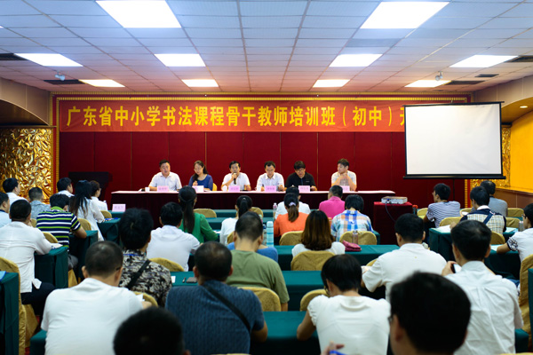与会领导寄语培训班学员要不辱使命,充分把握与省内书法名家难得的学习和交流机会,切实提升书写技能和书法教学水平,为推动广东省中小学书法教育做出切实的贡献。