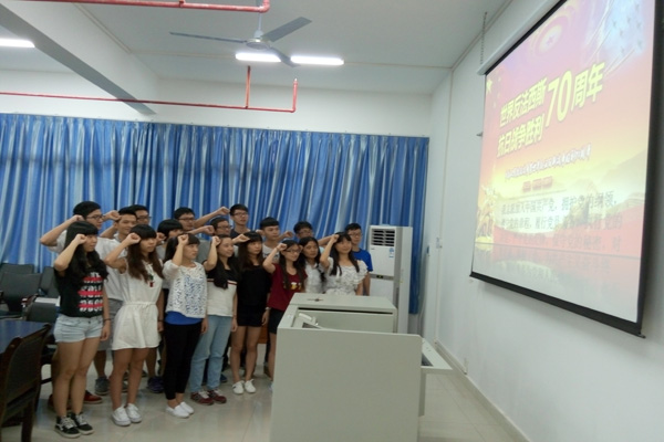 本网讯(化学化工学院 通讯)值纪念中国人民抗日战争暨世界反法西斯战争胜利70周年之际,为进一步激励新一届带班党员能够更好的树立铭记先烈、敢于争先的优良作风,9月9日下午,化学化工学院18名2015级带班党员重温入党誓词,庄严宣誓,立志带好新生班级。学院相关负责人及班主任和辅导员参加。