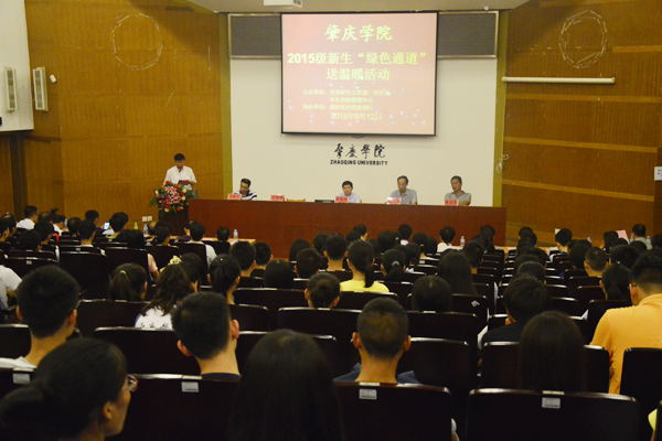 本网讯(记者 徐子敏 郑海丹 洪嘉敏 王幸)9月12日下午,2015级新生 “绿色通道”送温暖活动在学术报告厅举行,校党委书记曾桓松、校长和飞、校党委副书记叶峥嵘、副校长周苏平等校领导及对我校助学工作给予支持的端州农商行代表出席。