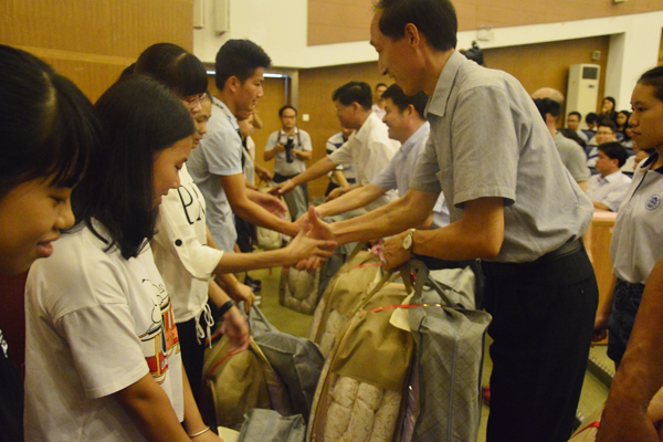 叶峥嵘在讲话中表示,我校认真贯彻执行教育部及省教育厅有关文件精神,提早对迎新工作进行部署,制定了各项资助措施,把新生入学及其他各项资助工作抓紧、抓好。为确保困难新生入学渠道畅通无阻,学校在假期就启动“绿色通道”工作,下拨“绿色通道”专项经费,确保每一位大学生不因家庭经济困难而辍学。他希望受助的学生要胸怀远大,心系国家,刻苦学习,奋发向上;要尽快适应新的环境,融入学校生活;要珍惜宝贵时光,汲取知识营养,学会感恩,自尊自强,用知识改变命运,以优异成绩回报社会。