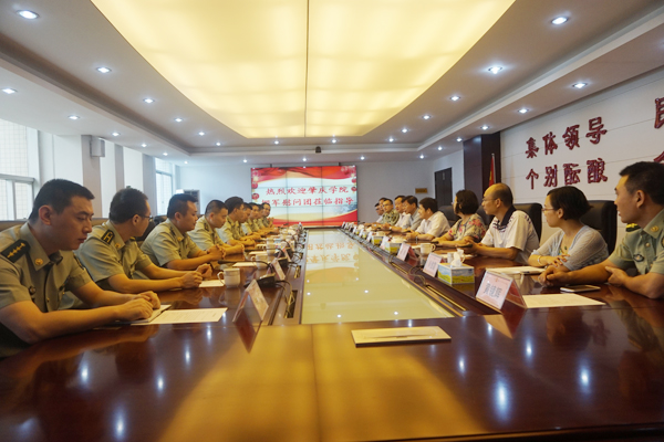 在武警支队的座谈中,支队政委李荣新、副支队长马玉龙等领导出席。李荣新对我校一行的到来表示感谢,介绍了支队在近期的安全工作、全省反恐汇演比武中取得的好成绩,表示这与我校的支持分不开,希望以后能够资源共享,在培养人才、促进军民团结等方面取得新成绩。