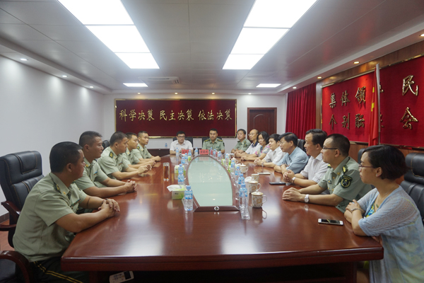 在军分区,司令员贾拾生、政委陈万仕、政治部主任付勇等领导热情接待我校一行,双方就征兵工作、军训工作等展开亲切交流,曾桓松表示我校会一如既往支持军分区的工作,多输送年轻有为的大学生入伍,希望军分区与我校加强交流,友好互惠。