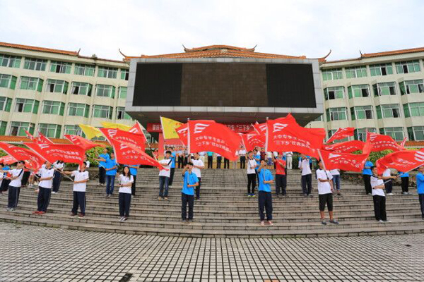 本网讯(团委 通讯)朝霞瑰丽,彩旗飘扬。7月22日上午,我校暑期文化科技卫生“三下乡”社会实践活动随着出征仪式的举行正式启动。校党委书记曾桓松、党委副书记叶峥嵘,团省委学校部副部长陈前、团市委副书记张帮繁、市疾病预防控制中心副主任蔡健生等领导,以及党办院办、组织部、宣传部、关工委等职能部门负责人、各二级学院党委领导出席仪式。