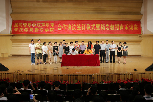 当天,杨岩还代表星海音乐学院声乐系与音乐学院签署协同育人、合作创新协议。根据协议,双方建立信息互通、资料共享、活动支持的合作机制,同时星海音乐学院声乐系在音乐学院建设艺术实践基地,扶持我校声乐专业的建设和发展。
