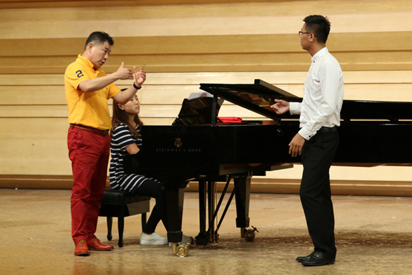 在欣然受聘为音乐学院客座教授后,杨岩的声乐讲座随后展开。他的3名学生在讲座中演唱了《小白菜》、《海恋》等曲目,配合他的讲解。音乐学院声乐主修生也在讲座中演唱歌曲,并接受杨教授从声音处理、歌曲情感诠释上的指导。