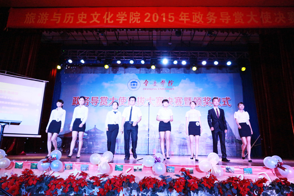 政务导赏大使比赛是由校团委主办,旅游学院承办的应用型人才培养特色项目之一,比赛面向全校学生,经过初赛,复赛的层层角逐,最终选出8位选手晋级决赛。
