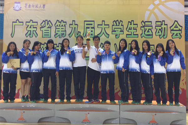 本次比赛由广东省教育厅和广东省体育局主办,华南师范大学承办。以体育教育专业女生为主力的我校女篮被分至“死亡之组”,与2014年广东省大学生篮球联赛第1名的广东体育职业技术学院、第3名的广州大学、广州中医药大学,以及东道主华南师范大学一个小组。在与华南师范大学女篮进行的三四名决赛中,我校女篮凭借顽强的意志、有效的战术,以69:63的比分赢得了胜利。