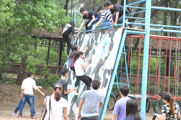 活动内容包括“多人木屐”、 “超音速”、“攀岩”等多个集体项目。在活动中,同学们发扬勇敢比拼的劲头,不断挑战自身,通过互相配合完成了活动。学生干部表示,这样的拓展活动能够增强自己的自信心与集体荣誉感,强化团队合作意识、责任意识与协同创新意识,并有助于促进工作中开发潜能、提升统筹协调等能力。