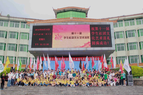 近年来我校学生社团活动成果丰硕,2014年我校第十届学生社团文化艺术巡礼荣获“2014年广东高校校园文化建设优秀成果”三等奖,影视文化协会被团省委评为“2013-2014年度广东省优秀学生社团”。在此基础上,第十一届学生社团文化艺术巡礼根据第五届“促进高素质应用型人才培养”主题教育活动的要求,整合39个社团的力量开展“响应‘三走’号召——享受体育乐趣•拥抱健康生活”、“践行核心价值观——传绎文化经典•展现人文风采”、“助力应用型人才培养——掀起文艺新风•推动科技热潮”三大系列活动,包括了体育嘉年华、环保公益系列活动、第九届英文歌唱大赛等8个由社团承办的精品项目。
