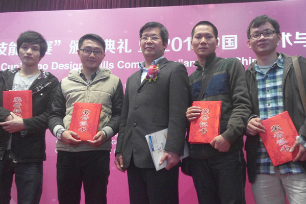 本网讯(美术学院 通讯)由广东省工业工会、广东省装饰行业协会联合主办,广州美术学院、广东省展示设计专业委员会协办,中国进出口商品交易会广州交易会广告有限公司承办的2014广东省岭南杯会展设计技能大赛颁奖典礼3月2日在广州琶洲国际展览中心举行。仪式上,美术学院师生获得多个奖项。在职业组中,杨国杰老师获得一等奖,李甲辉老师获得三等奖;在学生组中,梁嘉诚同学获得一等奖,张沂同学获得三等奖,另有多名同学获得优秀奖。