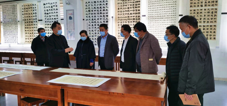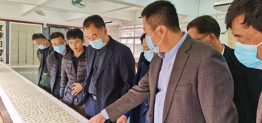 本网讯 1月6日,副校长肖起清来到位于第三教学楼的文学院书法系教室,参观正在那里举行的2019级书法学结课作品展,并对书法学专业建设作出指导。文学院院长唐雪莹、党委书记陈明华参加活动。