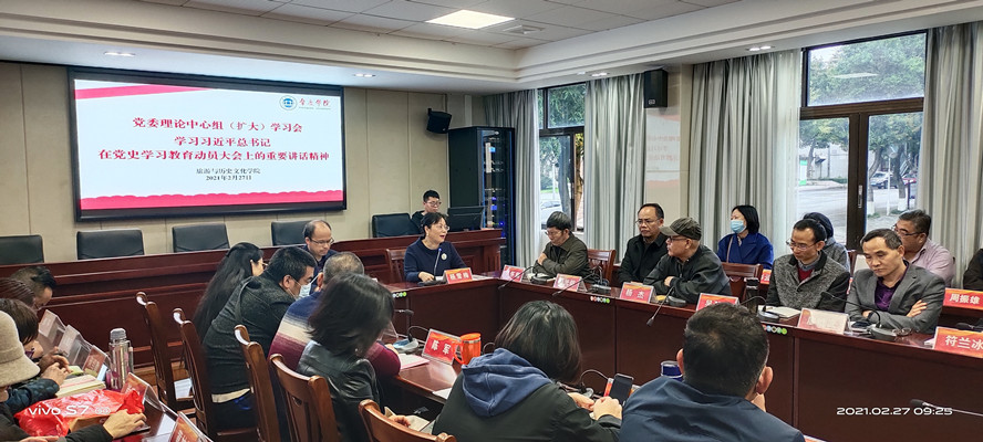 本网讯 2月27日,旅游学院党委中心组举行专题学习会,认真学习习近平总书记在党史学习教育动员大会上的重要讲话精神。党委书记杨雪梅主持,院长李朝军等学院领导、全体教工党员参加。