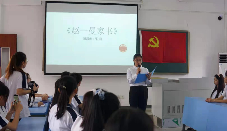 在优美的旋律中,同学们深情演绎了一封封饱含真情的红色家书,感悟革命先辈的家国情怀,领略烈士们的精神家园。《趁着年纪尚轻,多向自然科学学习——毛泽东家书》《黄继光家书》《李德光家书》等红色家书,一次次打动师生的心灵。朗诵者或激昂澎湃、或低沉婉转、或热情洋溢、或质朴真诚,在场的师生无不动容。20旅管班张涵同学诵读了《赵一曼家书》,她说:“重读赵一曼烈士充满浩然正气和慈母大爱的信,让我不禁潸然泪下。正是无数的革命烈士,用鲜血和生命换来了我们如今的和平盛世。”