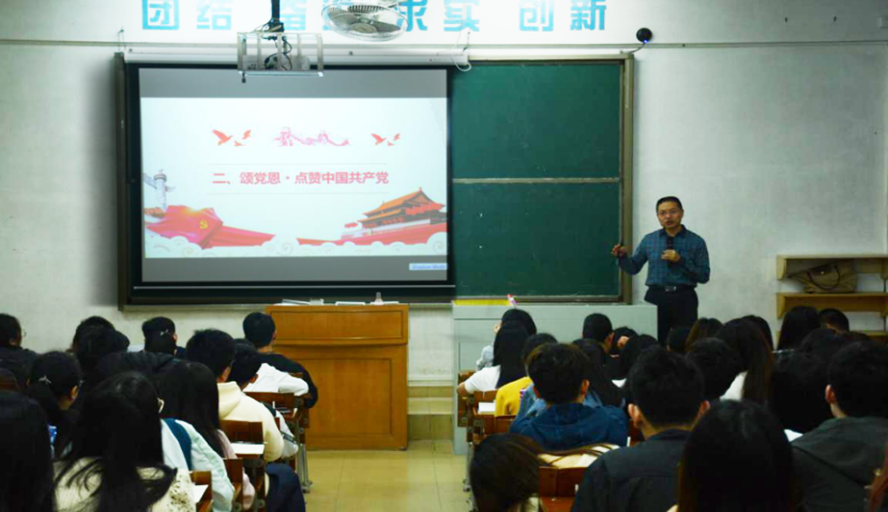 本网讯 为贯彻落实学校党委关于党史学习教育的相关要求,数学与统计学院结合“思政第一课”将党史学习教育主题宣讲带入课堂,引导广大师生学党史、听党话、跟党走。