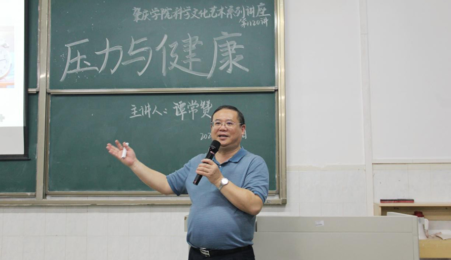 本网讯 为帮助学生调节学习和生活的压力,4月1日晚,学生工作处、星湖管理办公室和兰蕙书院联合为在星湖校区学习生活的大一新生举办“压力与健康”专题讲座。肇庆市第三人民医院副院长、主任医师谭常赞应邀作主讲人。