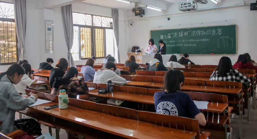 本次比赛分为初赛和决赛两个环节。当天进行的赛事为初赛,以笔试方式展开,重点考察同学们对民法典、国家安全法、知识产权法等法律知识的掌握情况,以及对社会有关法律热点问题的关注度。