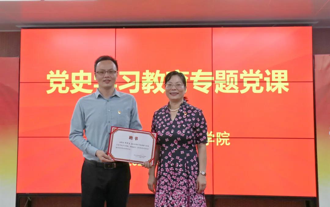 课后,杨雪梅为谢石生颁发青马导师聘书。她希望全体师生党员、共青团员从这堂党课中汲取营养,紧扣学习主题,进一步学习领会,切实提高思想认识,并结合工作实际,创新工作方法,切实推动工作落实,通过党史学习教育,凝聚起推动学院发展的强大力量。