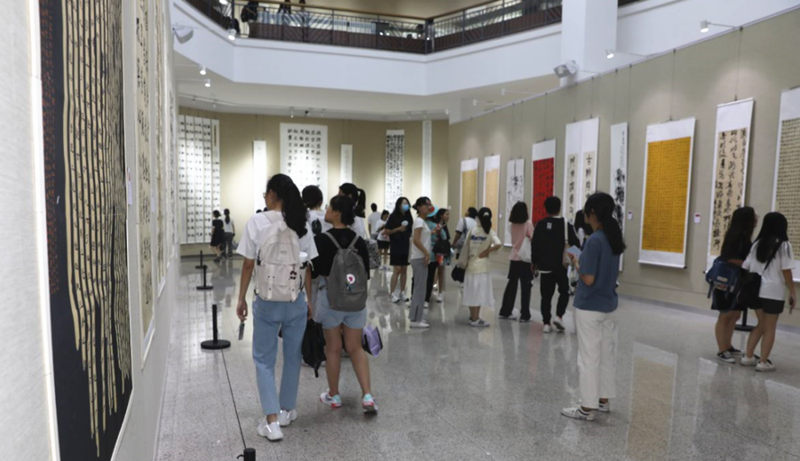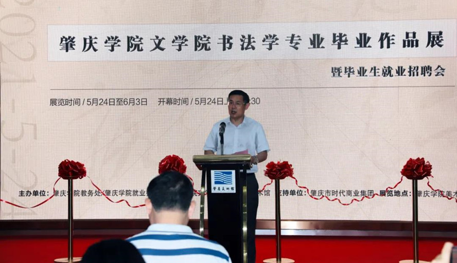 校长吴业春出席开幕式并致辞。他表示,书法学专业学子作为书法的学习者、传承者,要时刻谨记书法美育任重道远,在今后的工作与学习中不断追求美、倡导美、孕育美。他希望本次展览成为同学们人生中的一次洗礼和升华,同学们能够坚守信念,不断进取,继续攀登艺术高峰,为弘扬优秀传统文化作出积极贡献。