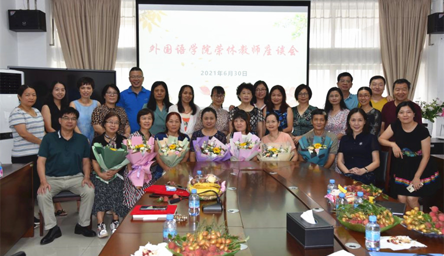 本网讯 七一前夕,外国语学学院举行荣休教师座谈会,学院领导班子成员、七名退休教师及教师代表参加。