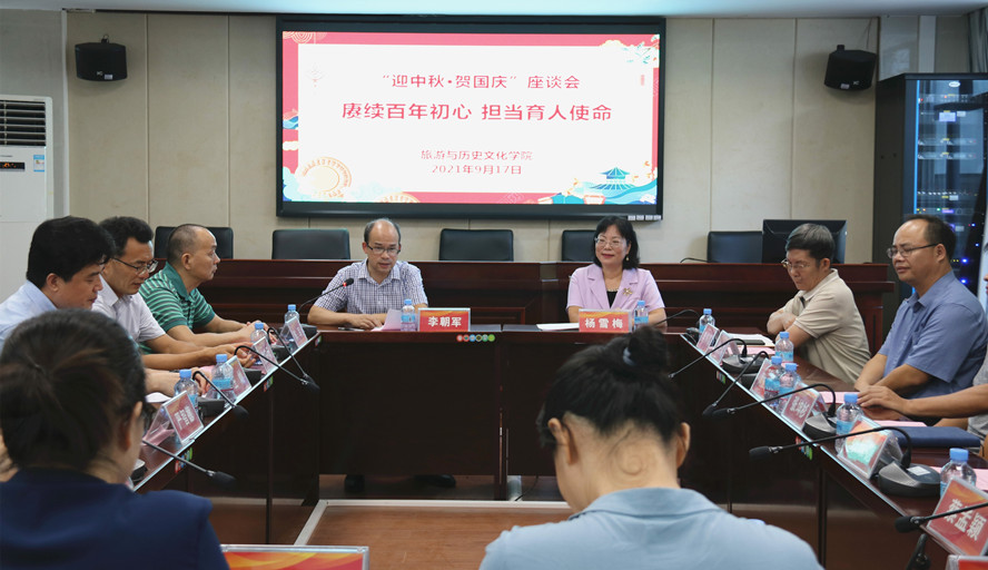 本网讯 9月17日,旅游与历史文化学院召开“迎中秋·贺国庆”座谈会,各民主党派代表、台湾教师、香港教师欢聚一堂,喜迎佳节,共叙“不忘教育初心,坚持立德树人”情怀,表达把学院建设得更加美好的决心。