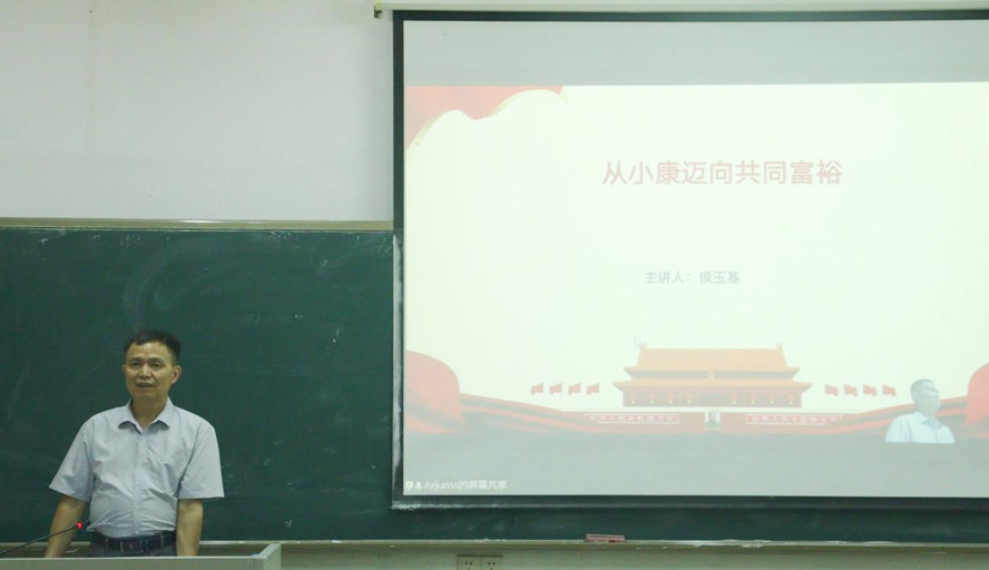 本网讯 9月22日,政法学院、知识产权学院在星湖校区组织2021级新生召开以“从小康迈向共同富裕”为题的会议,勉励同学们增强爱国、报国、强国的信念,勇担时代使命,矢志努力奋斗,不断成长成才。学院党委书记侯玉基出席活动并主讲。