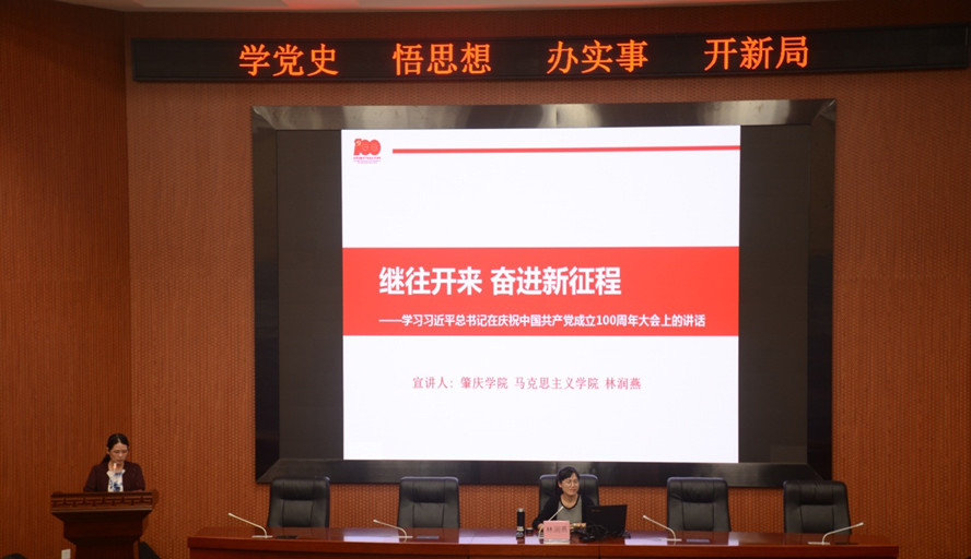 又讯 为深入推动提升党史学习教育成效,近日数学院党委邀请学校党史学习教育宣讲团成员、马克思主义学院的林润燕老师在学术报告厅做了题为《继往开来,奋斗新征程》的习近平总书记“七一”重要讲话精神专题宣讲报告,并组织学生党员到学校图书馆“百年党史”学习园地参观学习,开展主题党日活动。