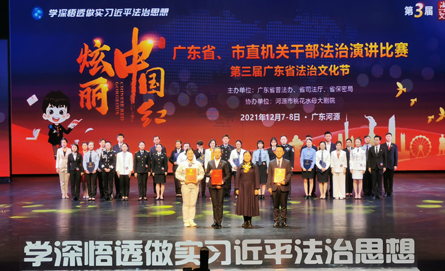 本网讯 12月8日,由省普法办、省司法厅、省保密局主办的“炫丽中国红”省、市直机关干部法治演讲比赛总决赛在河源市举行。代表肇庆市普法办参赛的马克思主义学院张海鹰老师在比赛中凭借优异的表现,从省、市直的33名选手中脱颖而出,荣获赛事的“最佳表现奖”,为我市和我校争得了荣誉。