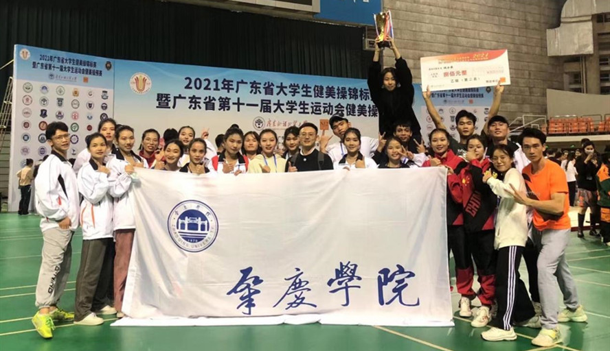 在2021年广东省大学生健美操锦标赛暨广东省第十一届大学生运动会健美操预赛,我校健美操队在马国锋副教授的带领下,在周文达、赵士浩、于珍三位教练员的通力协作下,取得综合风格齐舞自选套路小集体第二名;有氧舞蹈第三名;广东省健美操学生规定动作二级套路第三名;广东省健美操学生规定动作一级套路第六名;中国学生艺术体操技术等级动作标准四级徒手操第三名;中国学生艺术体操技术等级动作标准三级纱巾操第三名。最终获得团体总分第六名,林泽霖同学获得广东省大学生健美操锦标赛最美形象大使称号。