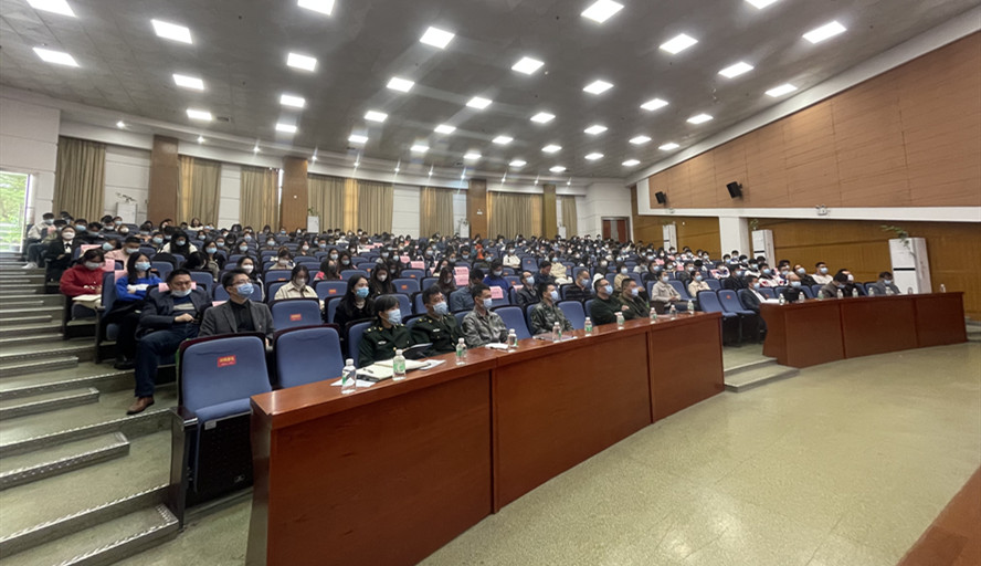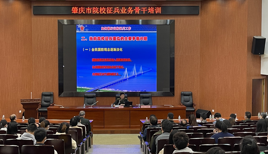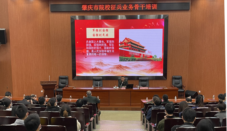 培训围绕大学生征兵的工资待遇、军衔定级、服役方向、毕业生参军优待、就业安置和就学升学等大学生入伍工作相关政策作辅导,并介绍了我校近年来征兵工作情况。