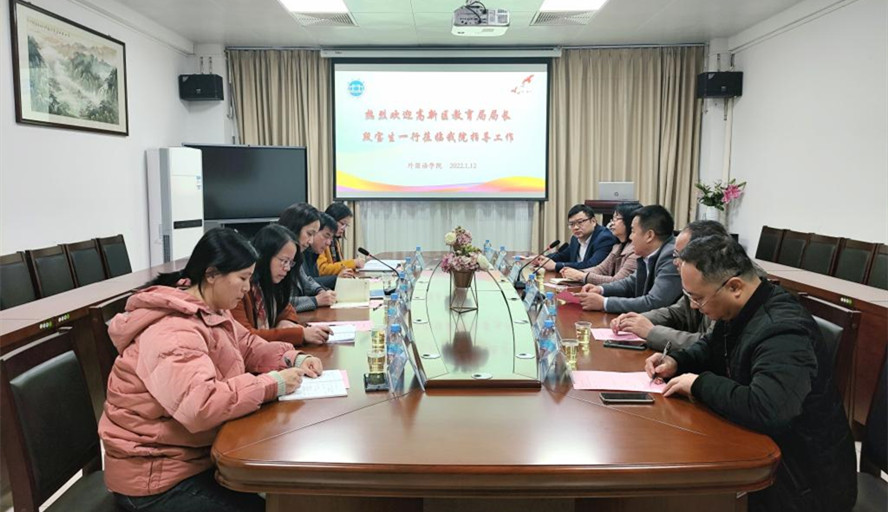 本网讯 1月12日,外国语学院院长江晓红、党委书记吕伟荣与到访学院的大旺国家高新区教育局局长段宝生一行进行座谈交流,双方围绕合作推进高新区基础教育进行了讨论,并初步达成合作意向。副院长于增辉等参加活动。