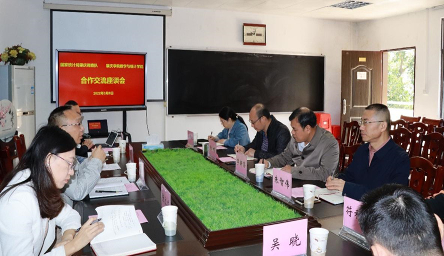 本网讯 3月8日,国家统计局肇庆调查队党组书记、队长刘国锋一行4人到数学与统计学院调研座谈。副校长李新昌出席,数学院领导班子参加。学院党委书记杨帆主持。
