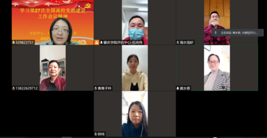 本网讯 3月25日,评估中心、发展研究院党支部通过腾讯会议线上开展学习贯彻第27次全国高校党的建设工作会议精神的活动,会议由党支部书记李佩环主持。