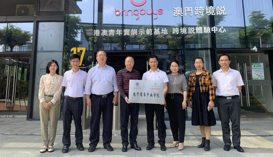 本网讯 5月17日,经管学院就电子商务产业学院的后续建设事项到珠海横琴跨境说网络科技有限公司总部开展调研,并在该公司举行产业学院授牌仪式。