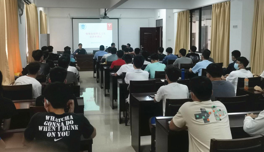 本网讯 近日,应机汽学院邀请,世界著名新能源汽车企业特斯拉公司通过在线形式对该院2019级学生进行实习宣讲和笔试测试。