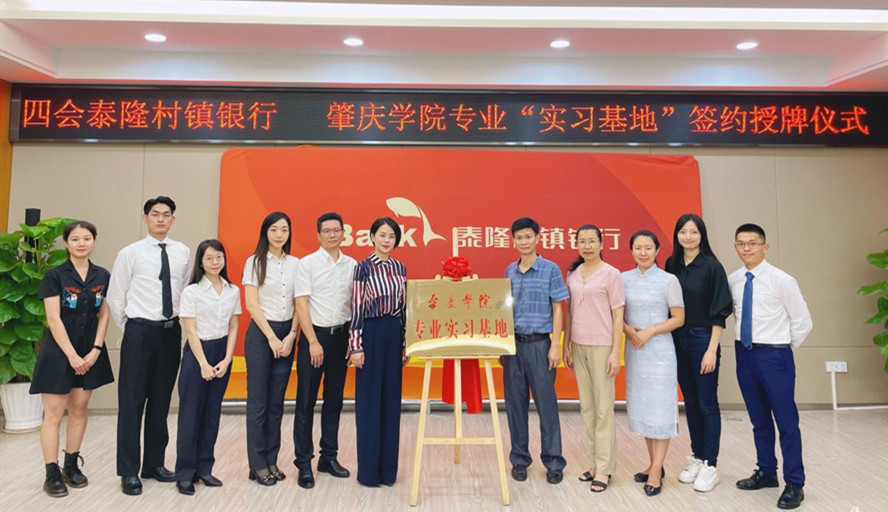 本网讯 6月10日,经济与管理学院副院长雷洪、党委副书记颜春萍、专业负责人田苗教授等一行6人到四会泰隆村镇银行进行实习基地考察和交流,确定泰隆村镇银行为经济与管理学院专业实习基地并举行授牌仪式。