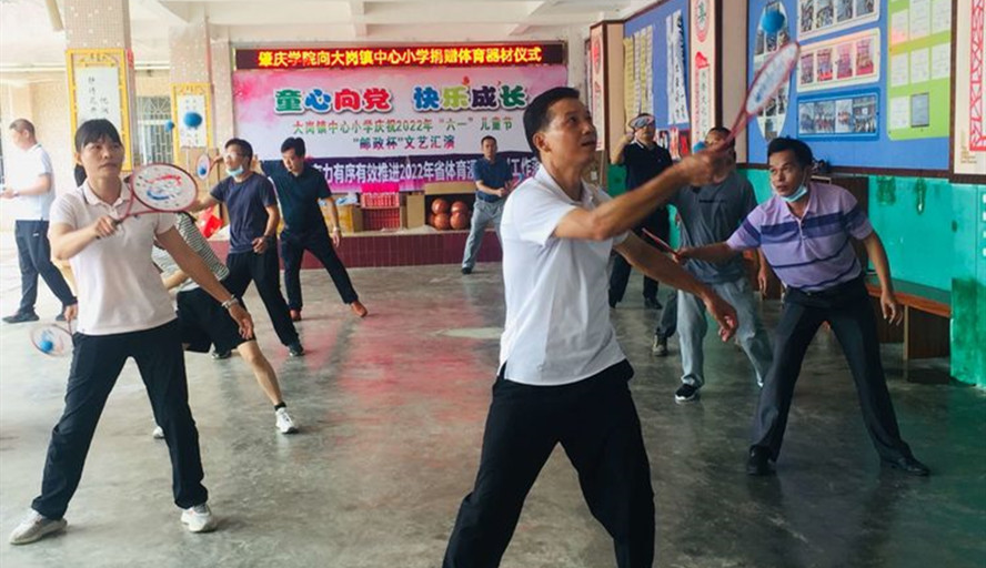 体育浸润行动计划活动旨在通过探索建立高校支持中小学体育协同发展机制,对薄弱地区中小学校在体育课程教学、实践活动、校园文化建设、教师队伍建设等四个方面提供服务,推进帮扶对象学校体育“一校一品”“一校多品”的特色发展。据悉,在前期调研沟通的基础上,肇庆学院本次向怀集县大岗镇中心小学捐赠价值3万余元的体育器材,包括篮球200个、毽球1200个和柔力球运动100套。