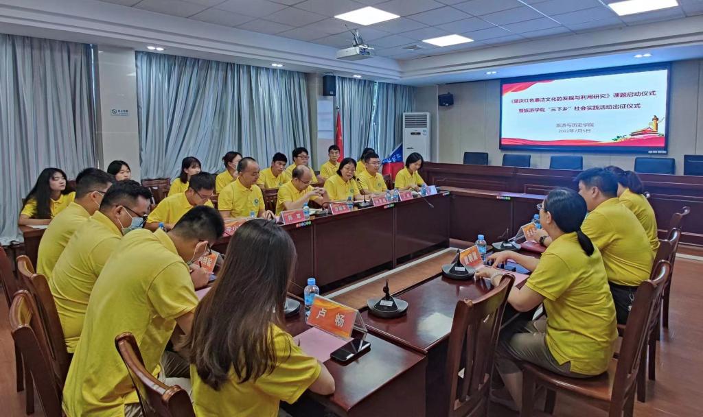 本网讯 7月5日,旅游学院举行《肇庆红色廉洁文化的发掘与利用研究》课题启动仪式暨“三下乡”社会实践活动出征仪式。