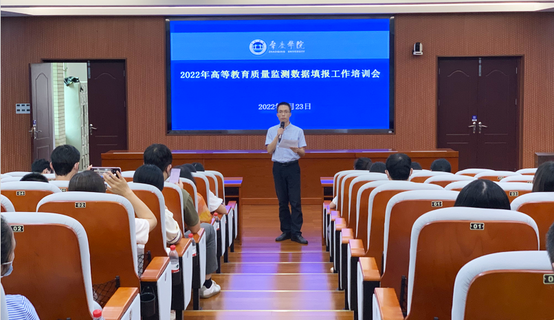 本网讯 9月23日,评估中心举办2022年高等教育质量监测数据填报工作培训会,邀请专家以视频会议的方式为各相关部门开展分类别、分批次的培训辅导。各职能部门及各二级学院共90多人参加培训。