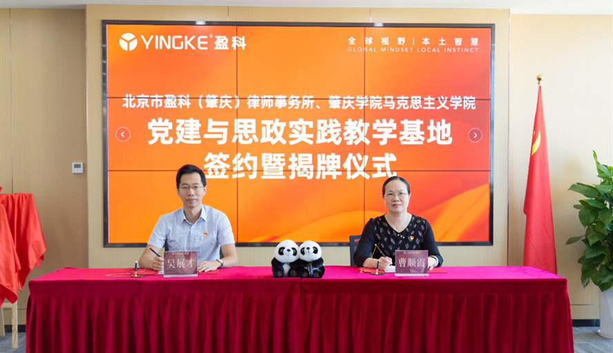 本网讯 近日,马克思主义学院党总支与北京市盈科(肇庆)律师事务所(以下简称“盈科肇庆”)党建与思政实践教学基地签约暨揭牌仪式在盈科肇庆举行。马克思主义学院党总支书记、院长曹顺霞,副院长曹和修;盈科肇庆党支部书记吴展才、执行主任周丽等参加仪式。