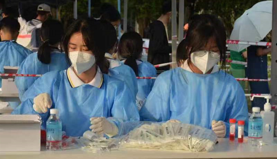 在教工党员突击队的引领示范下,学生党群志愿组坚定“永远跟党走”的信念,在认真做好个人防护的同时,配合学校做好核酸检测、为班级学生分发快递等服务。