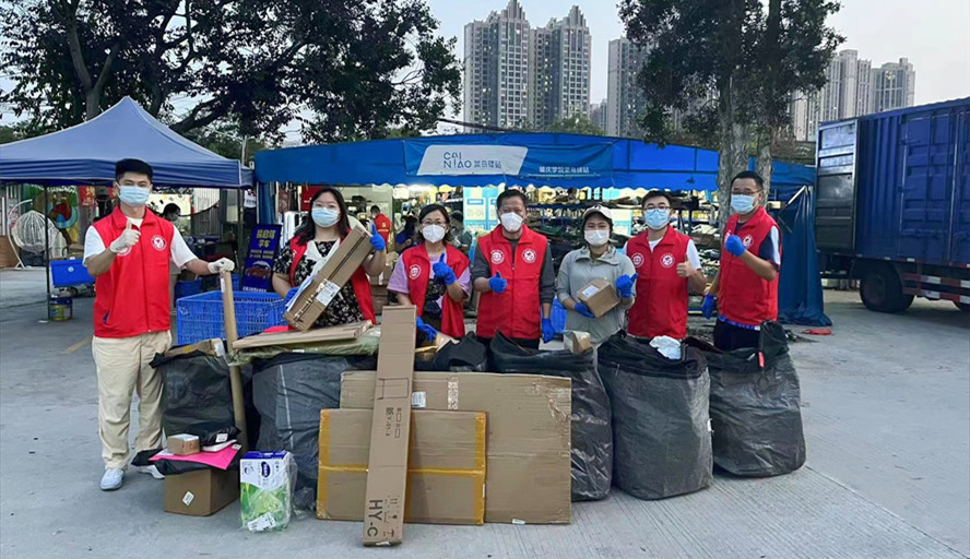 服务学生,做学生的“快递员”。由于校园实行封闭管理,又逢“双11”购物节刚过,学生有大量的包裹滞留在学校对面的菜鸟驿站。学工团队敏锐地觉察到学生的需求,齐齐上阵,取回近500件包裹并有秩序地分发,以实际行动着力为师生办实事。