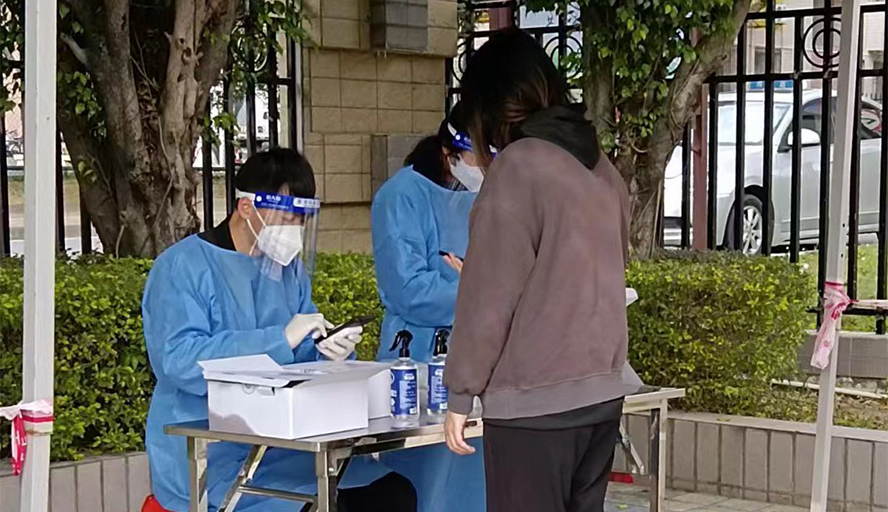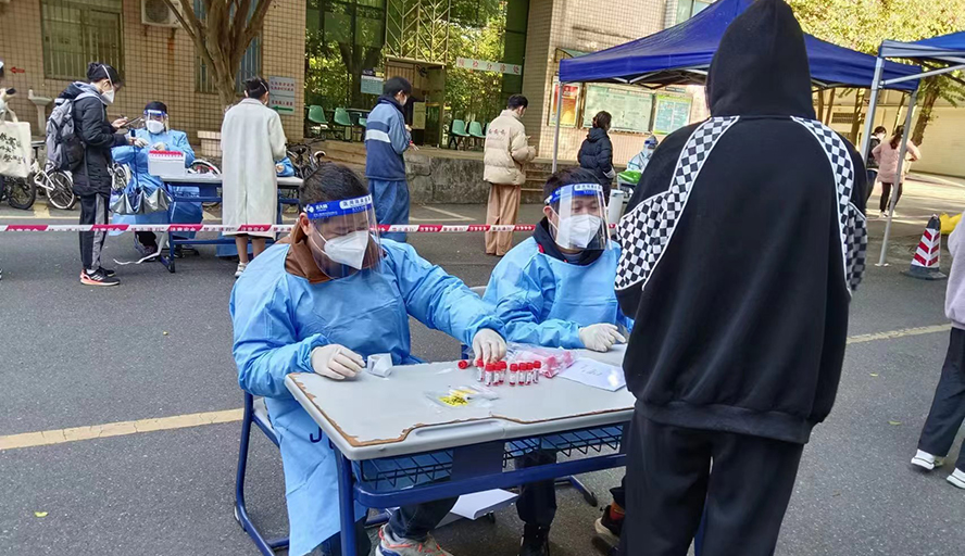 图片说明:12月20日,机关党员志愿者积极参与考研学生核酸检测工作。据了解,本月24日至25日,2023年研究生招生考试将在我校如期举行。为保证考生和考试工作人员健康安全,学校根据疫情防控要求,组织开展了本次核酸检测活动。