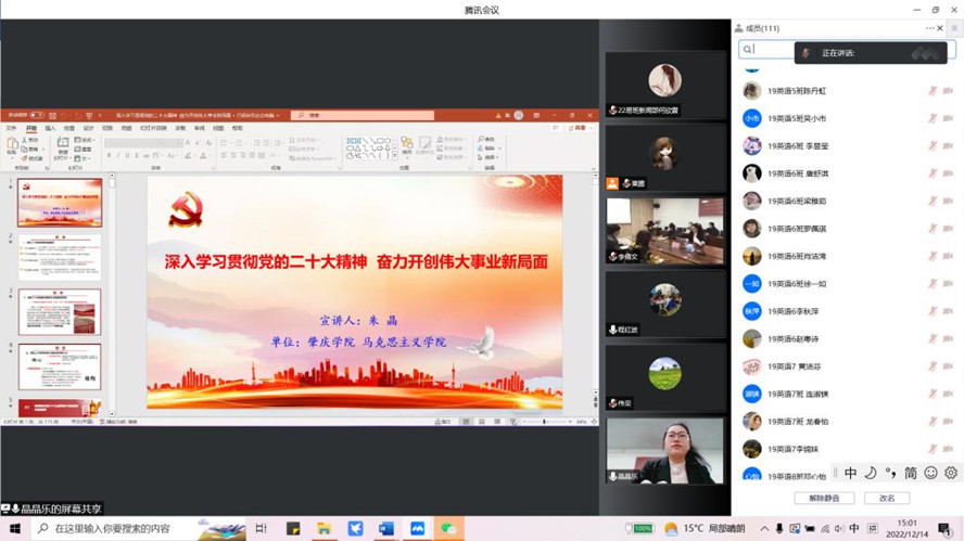 宣讲活动采取线上与线下结合的方式,学院在校师生党员共14人线下参与,其余师生党员共约130人线上参与。学院党委书记吕伟荣主持活动。