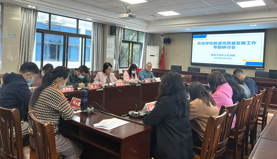 本网讯 2月22日,旅游学院各系部分别召开推进高质量发展工作专题研讨会。党委书记杨雪梅主持会议,全体教师参加。
