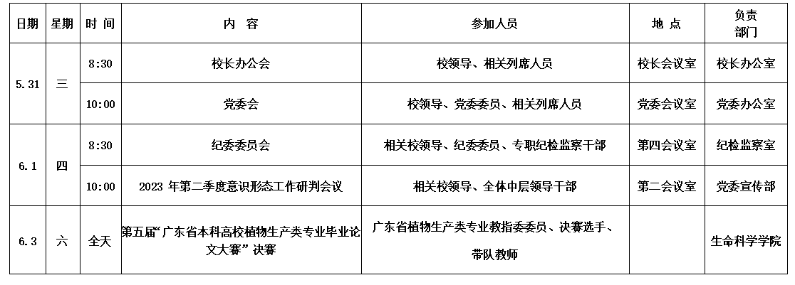 2022-2023学年第二学期第十五周工作安排(5月29日—6月4日)