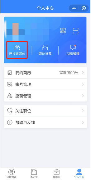 毕业生可通过个人中心查询投递记录等。