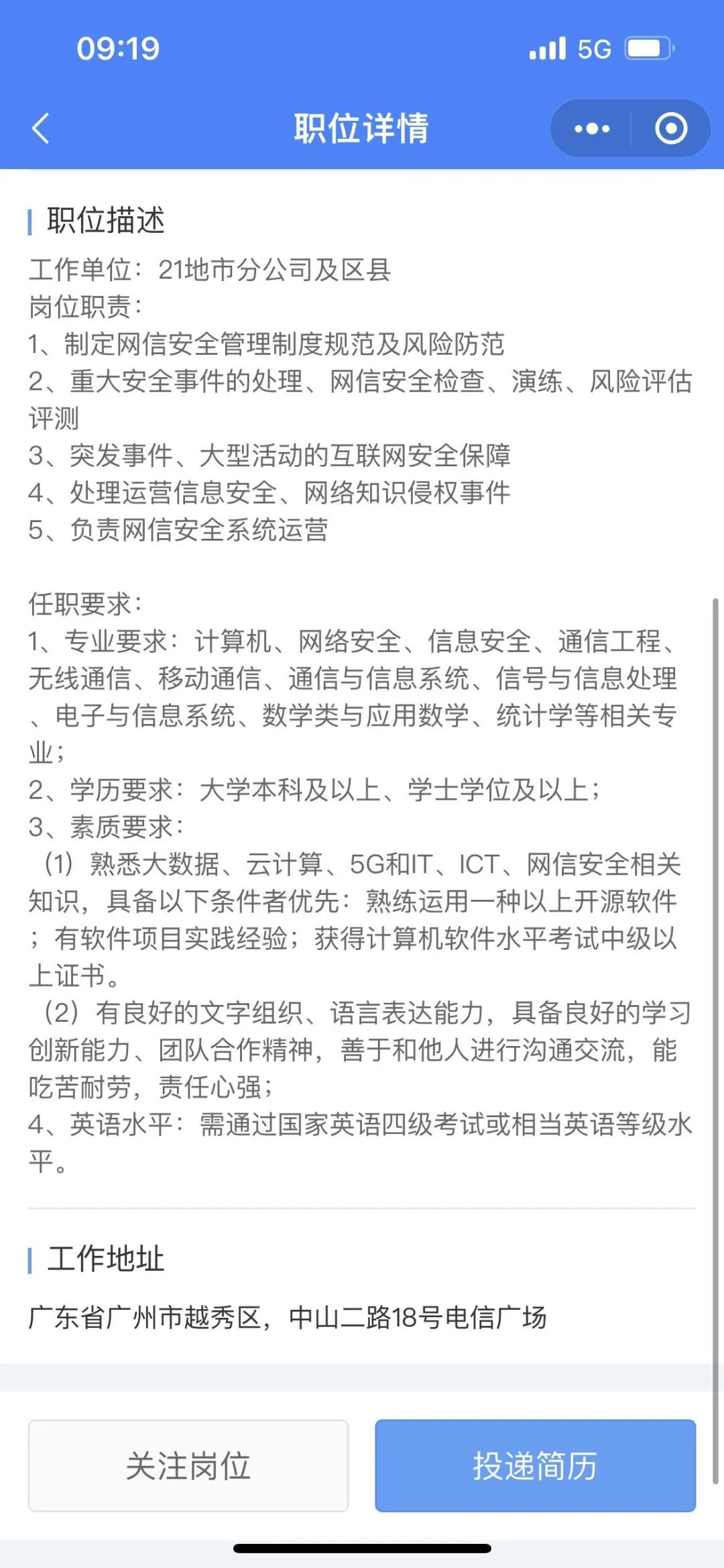 进入后可查阅心仪招聘企业和岗位,并在线上投递简历;