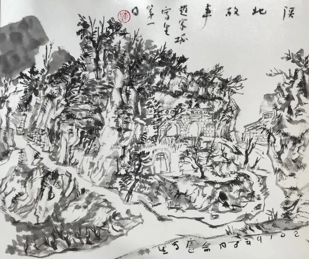 陈映欣《陕北故事》 纸本墨笔 38x45cm