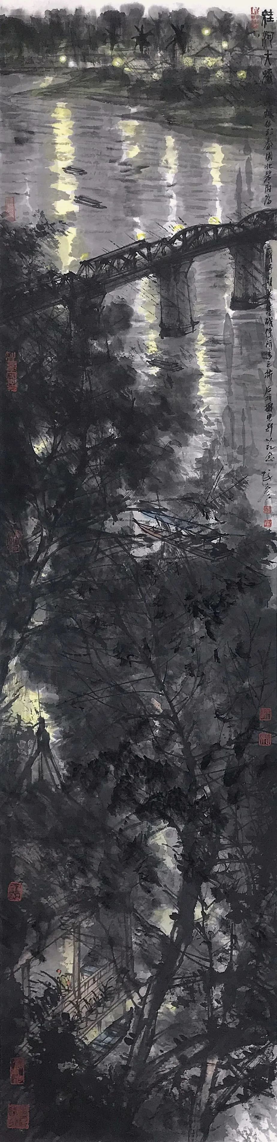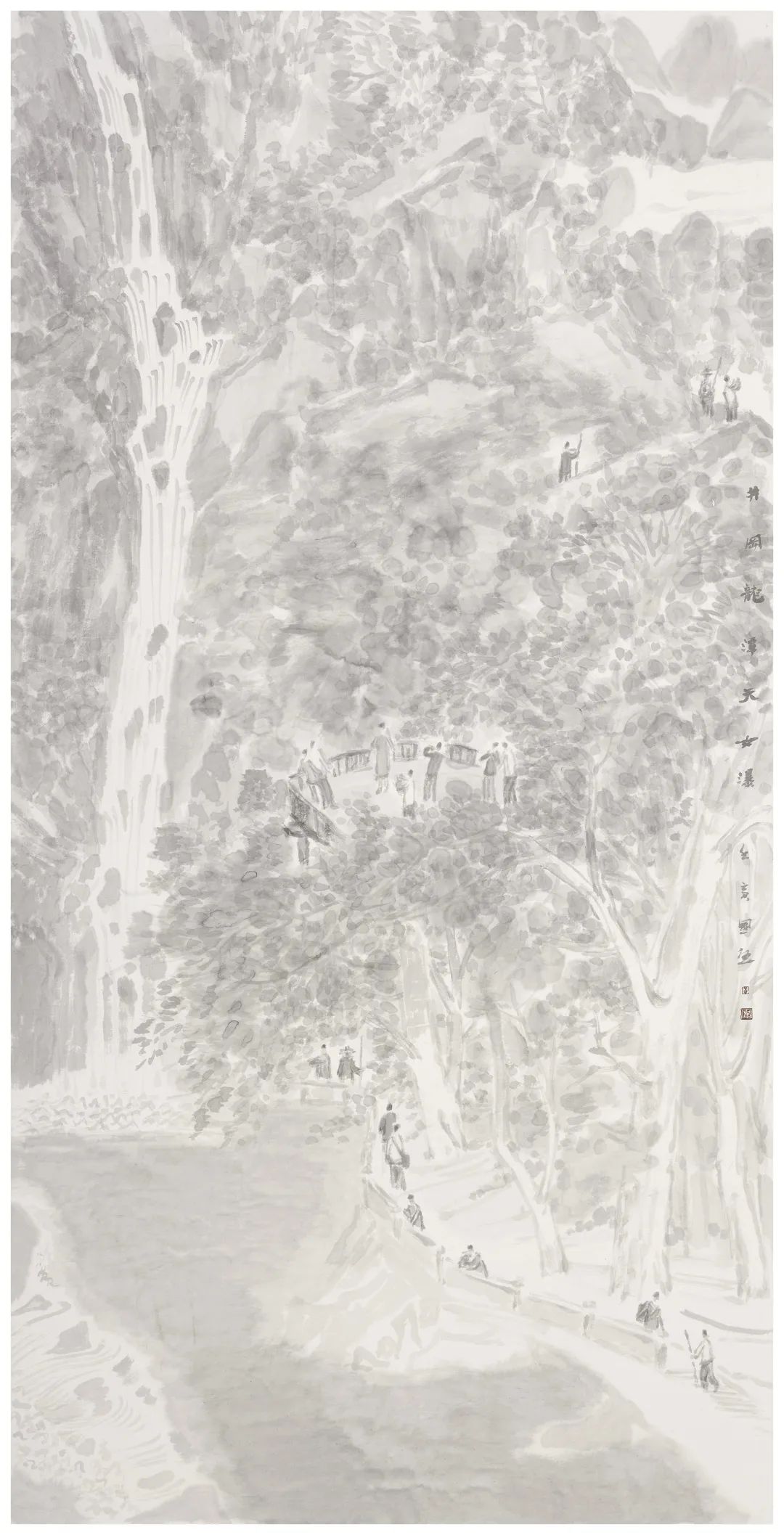 黄国武《春水秋云·龙王潭》 纸本墨笔 138×69cm 2018年