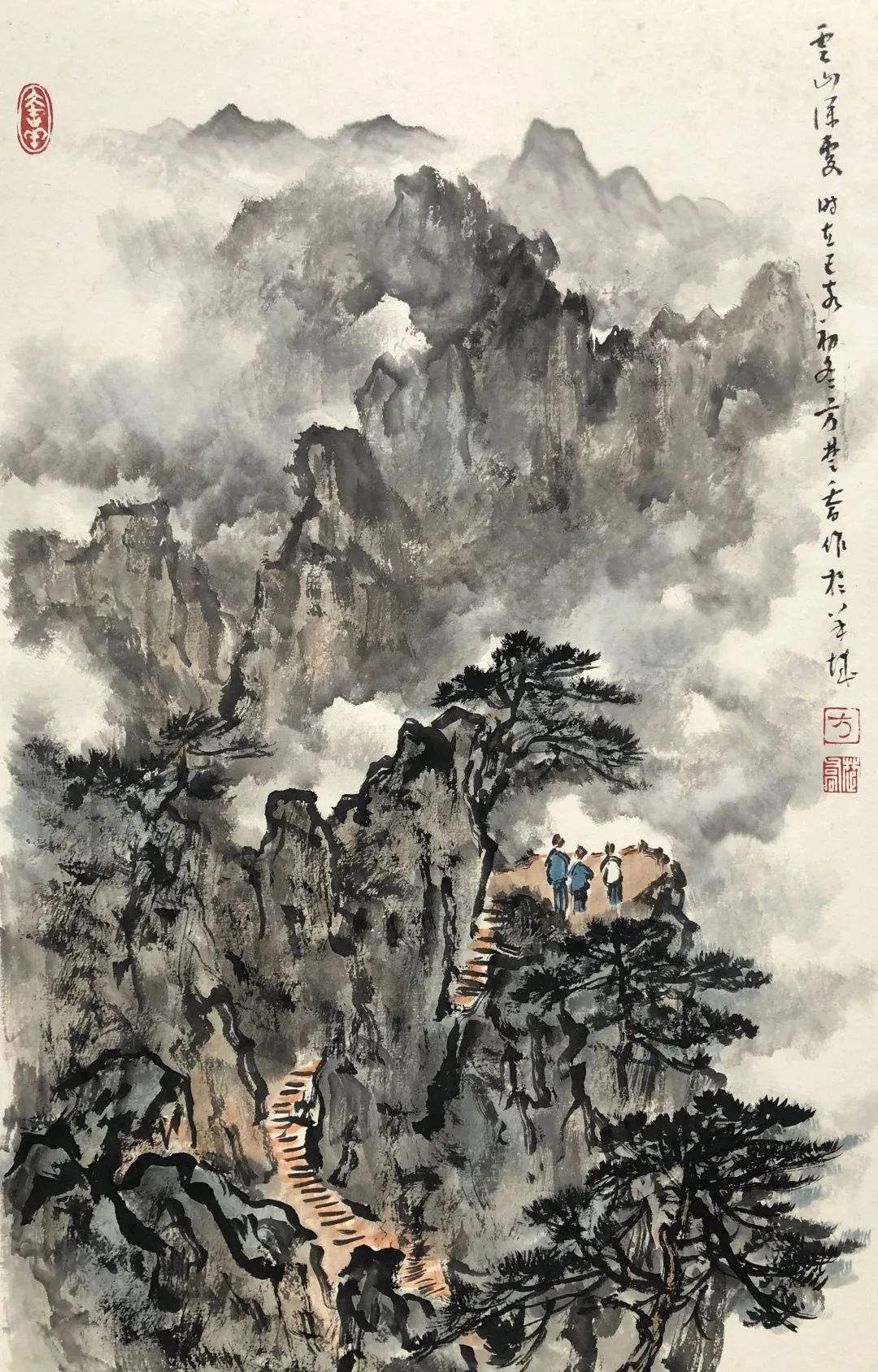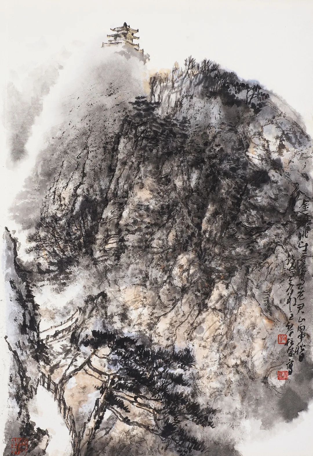 黎柱成《金顶远眺》 纸本设色 44x30cm 2016年